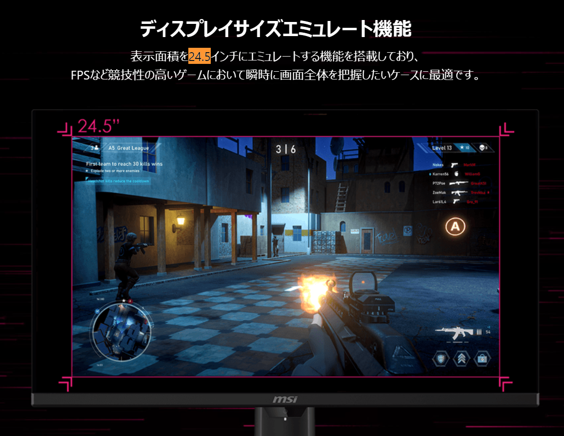 そんなゲーマー向け機能の中でも特に注目度が高いもののひとつが、表示領域を24.5インチ相当に縮小表示するディスプレイサイズエミュレート機能だ。
