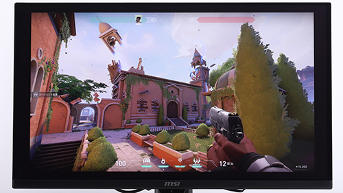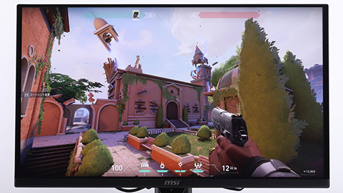 実際の表示に関しては、500Hzの高速駆動がフルサイズ表示と変わらない一方、24.5インチ相当の表示エリアにWQHDの映像を入力しているため入力解像度と表示解像度が一致せず、細かい文字の表示にガタツキが生じているが、VALORANTをプレイしている状況ではそこまで気にならなかった。細かい文字表示を多用するゲームでなければ十分に実用的な機能と言える。