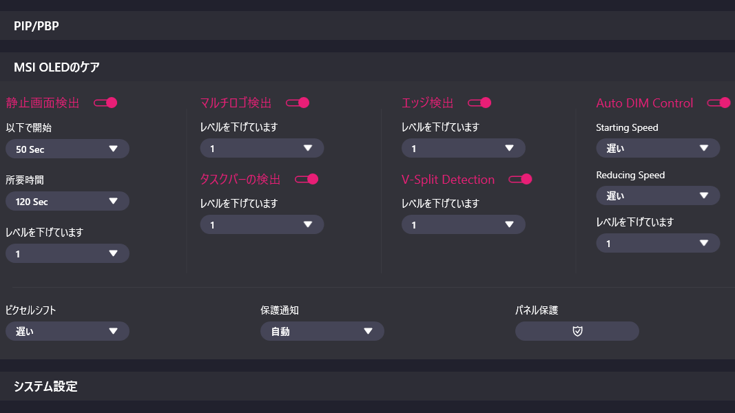 また、MSI OLED Care 2.0を搭載した他のモデルでも、同様に24時間間隔でのパネル保護機能が利用可能な製品が順次展開されている(詳細はMSIの公式ニュースリリースを参照のこと)。