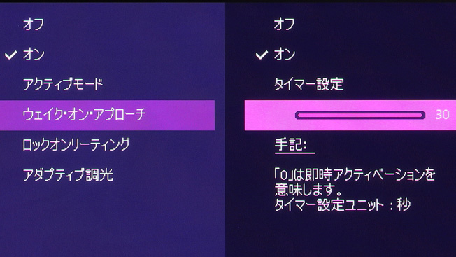 復帰時間的にはシステムモードが優位なのだが、AI Care センサーによる人認識の精度はモニターモードの方が高い印象で、システムモードでは映像入力インターフェイスの種類や設定によってはうまく復帰できない場合もあった。