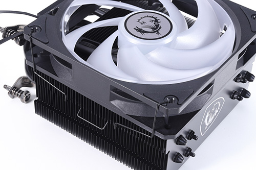 ヒートシンク本体への冷却ファンの固定にはワイヤークリップを採用しており、ブラックモデルではワイヤークリップも黒くカラーリングされていた。