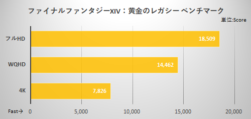 グラフィックス負荷が低めなタイトルとしてもう一つ、「ファイナルファンタジーXIV:黄金のレガシー ベンチマーク」を実行した。グラフィックス設定は「最高品質」に設定してScoreを比較した。