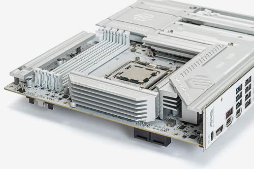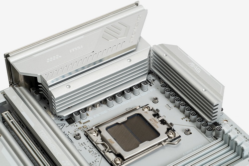 MSIの「TOMAHAWK」と言えば、“ブラック基調”、“質実剛健”、“ミリタリー調”の硬派なデザインに、高耐久のパーツを取り入れた安定重視の設計のミドルレンジ製品として人気を博している。一方の本機は、随所にTOMAHAWKらしい質実剛健さを残しつつも、PZシリーズと共通のホワイトシルバーのデザインを採用、表面にコネクターがないこともあって、従来のイメージを感じさせつつも、今まで以上に“スマート”に寄せてきている印象だ。基板、メモリスロット、PCI Expressスロットまで同一カラーでまとめており、統一感にこだわる人も満足できそうだ。