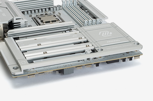 拡張性の高さも大きな特徴だ。まずM.2スロットは全部で4基搭載されており、2基がCPU直結でPCI Express 5.0 x4対応、残る2基はチップセット経由でPCI Express 4.0 x4対応となっており、高速かつ大容量のSSD環境を構築できる。すべてのスロットにヒートシンクが搭載されており、SSDの発熱対策もバッチリだ。
