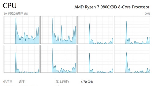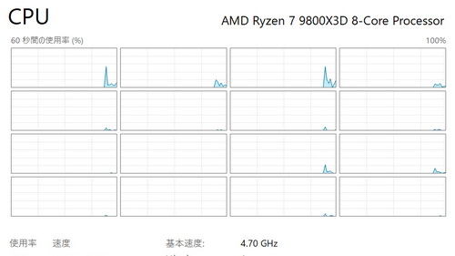 | CPU | AMD Ryzen 7 9800X3D(8コア16スレッド) |