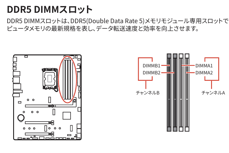 DDR5メモリについては、1チャネルに2枚のメモリを搭載(2DPC)する4枚挿しは避けるべきであるとされている。これは、DDR5メモリが2DPCでの高クロック動作が難しいことや、メモリモジュールの電力管理を行うPMICの相性などに由来するものだ。