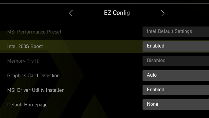 テストに使用するマザーボードのMSI Z890 TOMAHAWK WIFIでは、要件を満たすCPUとメモリを搭載することでBIOSメニューにIntel 200S Boostが追加され、これを有効にするとCPUとメモリのオーバークロック設定が適用される。