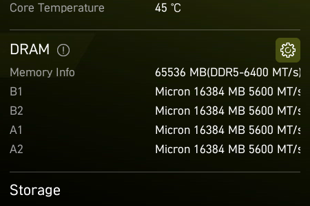 オーバークロックメモリであるCrucial Pro DDR5-6400 CL32 32GB Kitの動作設定値は、メモリスピードがDDR5-6400で、メモリタイミングは32-40-40-103、動作電圧は1.35V。オーバークロックメモリに対応したCPU/マザーボード側でメモリモジュールに記憶しているメモリプロファイルを読み込むことで設定値での動作が可能だ。