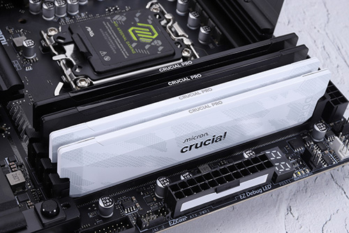 今回はCrucial Pro DDR5-6400 CL32 32GB Kitのホワイトとブラックが各1セットずつ手元にある。せっかくなので、4枚挿しでの動作も検証してみよう。