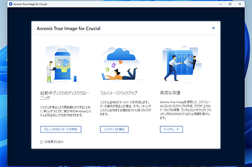 ここからは、Acronis True Image for Crucialを使ってシステムSSDを乗り換える手順を紹介する。