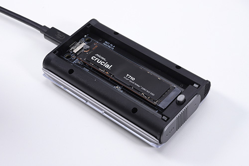 今回はWindows 11をインストールして運用中のCrucial製PCIe 3.0 SSD「P5」から、T710にOSごと移行するのだが、移行作業に際して新しいSSDをPCに接続する必要がある。マザーボードのM.2スロットに空きがあればそれを利用しても良いし、空きがなければ外付けSSDケースを利用するという手もある。