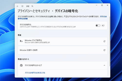 BitLockerはWindows 11 Pro以上でサポートされる機能だが、一部のメーカー製PCなどではWindows 11 Homeでもデバイスの暗号化がオンになっている場合がある。オンになったままではディスククローンが失敗する場合があるので必ず無効にしておこう。
