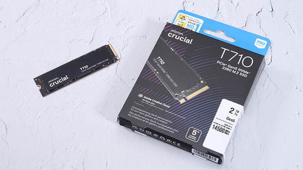 Crucial最新のPCIe 5.0 SSD「T710」は、2TBモデルの性能がリード最大14,500MB/s、ライト最大13,800MB/sに達するハイエンドSSDだ。