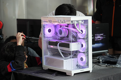 GIGABYTEが福岡でゲーミングPCの組立イベントを開催、村井理沙子さんとgradeon氏が早組み対決!