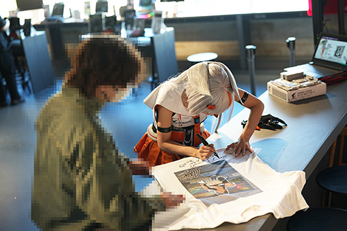 イベントではモデル/コスプレイヤーの西井綾音(あたた)さんが「神鷹凛」のコスプレで製品とキャラクターをアピール。撮影会やサイン会の時間も設けられた。