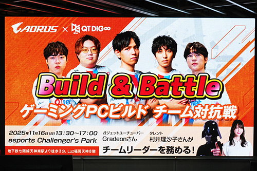 日本ギガバイトがゲストを招いてゲーミングPCの早組を競うイベント「Build & Battle 最強ゲーミーティング PC を一緒に作ろう!」を11月16日に福岡県福岡市のesports Challenger's Park(Luz福岡天神 8F)で開催した。