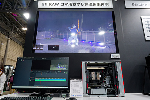 FastCopyのデモ環境は「8K RAW コマ落ちなし快適編集体験」のコーナーも兼ねており、ファイル転送だけでなく、動画編集に超高速ストレージを使用しても快適であることが紹介されていた。