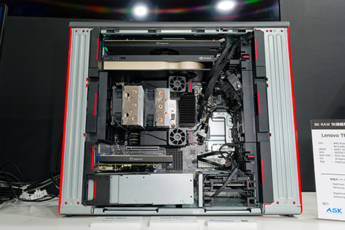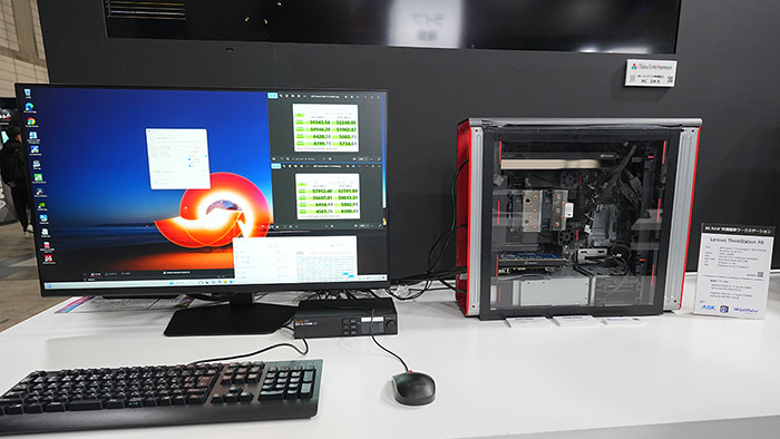 今年はベンチマークだけでなく、その速度が“実際に使い物になる”というところにこだわったデモが行われており、実測で40GB/s超えでのファイル転送や、8K RAW動画編集がコマ落ちなしで行えるデモなどを実施。