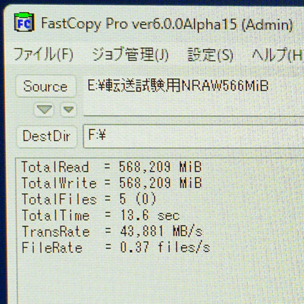 ファイルの転送は、Windowsのエクスプローラーではどれだけ高性能なストレージを使用しても数GB/sの転送速度で頭打ちになってしまうが、高速ファイルコピーツールの「FastCopy」を使用すれば、ストレージのフル性能に近いところまで性能を引き出して使用できる。特にハイエンド環境では50GB/sを超える読み書き速度を達成している、というのは以前本誌でお伝えしたとおりだ。