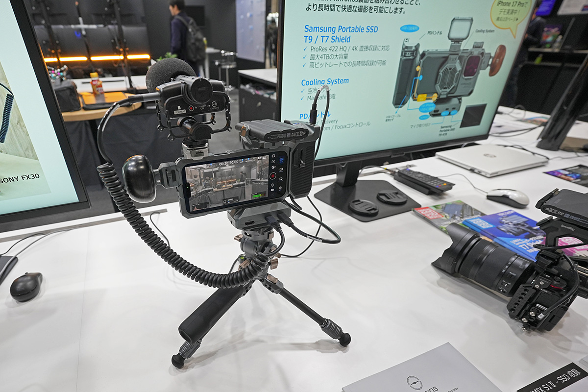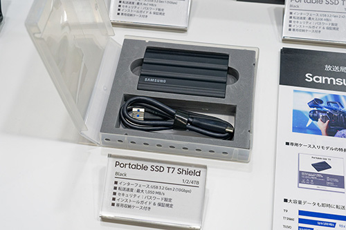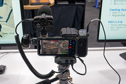 FastCopyや8K動画編集などのデモ以外にも、Samsung SSDブースには多数の機器が展示されており、Thunderbolt 5やUSB4に対応する機器のほか、カメラやiPhoneでの外付けSSD活用法紹介、動画編集ソリューションの紹介など、映像分野に関わりのあるデモが多数行われていた。