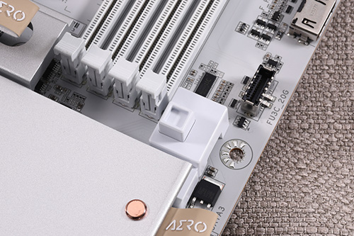 なお、メモリスロット付近には最上段のPCIe x16スロット用のロックレバー解除ボタンが用意されており、大型ビデオカードの取り外しがしやすくなっている。
