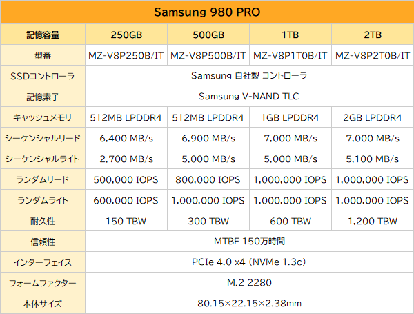 2020年、PCIe 4.0に移行、PROシリーズ初のTLC採用モデル「980 PRO」