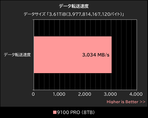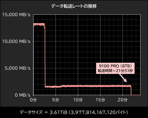 3.61TiBのデータ転送で9100 PRO 8TBのキャッシュ外の速度も確認