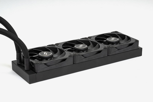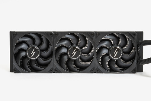 LIGHTNING Zは本製品のために開発された専用のポンプとウォーターブロックが一体となったカード部分と、120mmファン×3が固定済みのラジエーターがホースで連結されている。これらは完全に一体化されており、メンテナンスフリーを実現している。