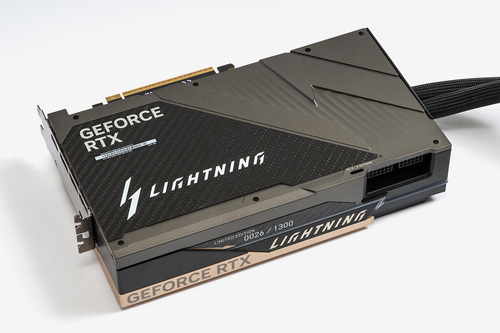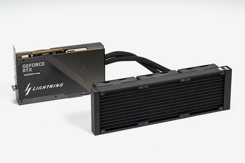 本稿で紹介する「GeForce RTX 5090 32G LIGHTNING Z」は、このLIGHTNINGシリーズの復活を告げるモデルである(以降RTX 5090 LIGHTNING Zと略)。これまでのLIGHTNINGシリーズは代々空冷クーラーを採用してきたが、RTX 5090 LIGHTNING Zは水冷システムを採用。専用のウォーターブロックとラジエーターを組み合わせた究極の1枚である。