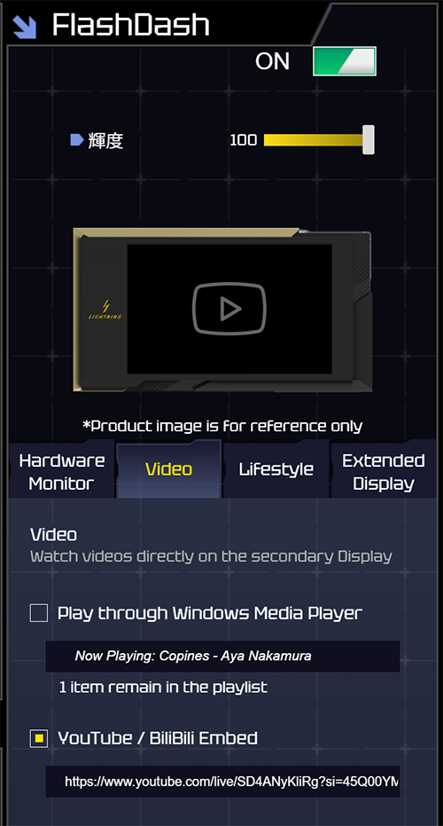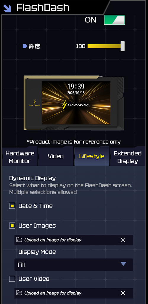この8インチ液晶は背面のUSB Type-Cとマザーを接続し、専用のUSBディスプレイドライバーを導入することで初めて利用可能になる。動作中はここにGPU温度やクロックなどの情報を表示させるほか、指定した動画ファイルを再生する、あるいは拡張デスクトップの一部として利用することも可能だ。近年PCケースの中に入れる小型液晶パネルが出回っているがRTX 5090 LIGHTNING Zはカードの表面にこれに近いものを組み込んであるのだ。