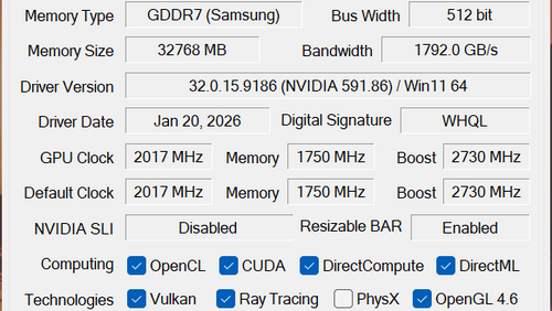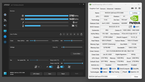 | ビデオカード | MSI GeForce RTX 5090 32G LIGHTNING Z、 NVIDIA GeForce RTX 5090 Founders Edition |