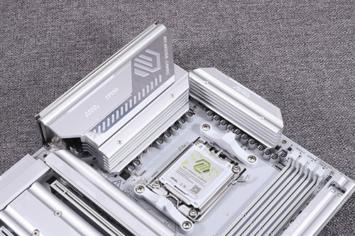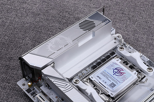 MPG X870I EDGE TI EVO WIFIのVRM冷却用ヒートシンクには小口径の冷却ファンが搭載されている。