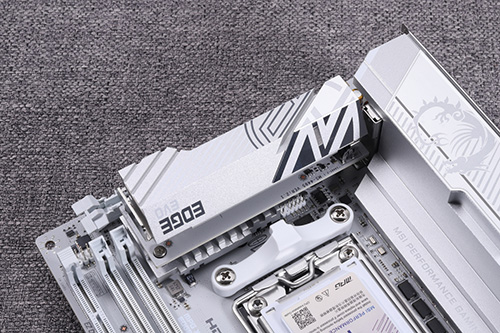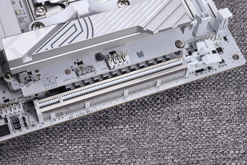 M.2スロットのうち、ヒートシンクを備えるM2_1スロットはCPU直結でPCIe 5.0×4レーンに対応。マザーボード裏面のM2_2スロットと、5-in-1 XPANDERカードのM2_3スロットはX870チップセットに接続されており、PCIe 4.0×4レーンに対応している。