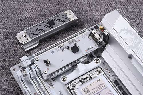 MPG X870I EDGE TI EVO WIFIでは、独自の拡張カード「5-in-1 XPANDERカード」が付属している。Mini-ITX規格の基板面積を垂直方向に拡張することで、より多くの機能を搭載し利用可能にするものだ。