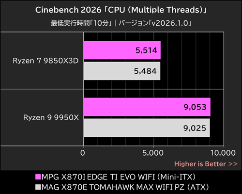 Mini-ITXマザーでもSocket AM5最上級CPUの性能は引き出せる?Ryzen 7 9850X3DとRyzen 9 9950Xの性能をATXマザーと比較してみた
