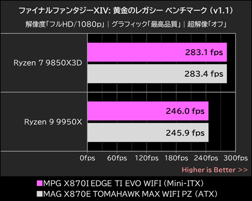 大容量キャッシュを備えるRyzen 7 9850X3Dの特異なゲーミング性能をしっかり引き出し、MPG X870I EDGE TI EVO WIFIはここでもATXマザーボードと変わらないパフォーマンスを発揮してみせた。