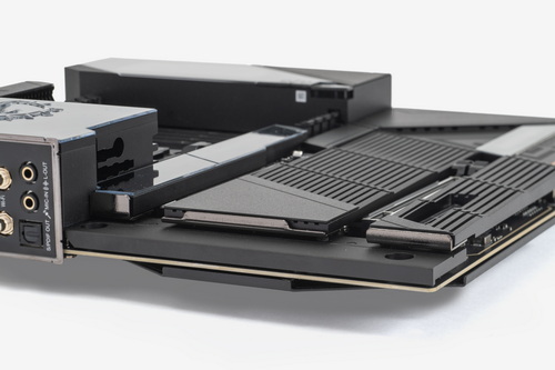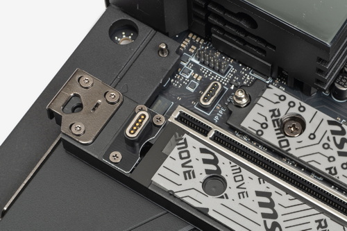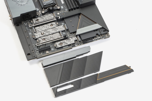 機能フル装備のフラグシップモデルということもあり、拡張性は圧倒的に高い。M.2スロットは全部で5基搭載されており、うち2基がCPU直結でPCI Express 5.0 x4対応、残りはチップセット経由でPCI Express 4.0 x4対応だ。すべてにワンタッチで取り外し可能なヒートシンクが搭載されており、使い勝手も快適だ。