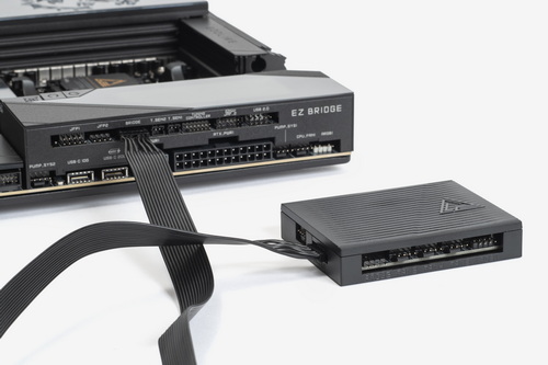 さらに、7基のケースファン、2基のARGB LED、1基のRGB LED、1基の水冷用のコネクターを備える「EZ Control HUB」が付属。これをEZ Bridgeと専用ケーブルで接続してマザーボードの裏面側に配置すれば、ファンやLEDなどのケーブルを集約し、ケース裏面側などの目立たないところに逃がせる。ケーブル整理に苦労することも少なくない昨今のPC自作の大きな助けになるギミックだ。