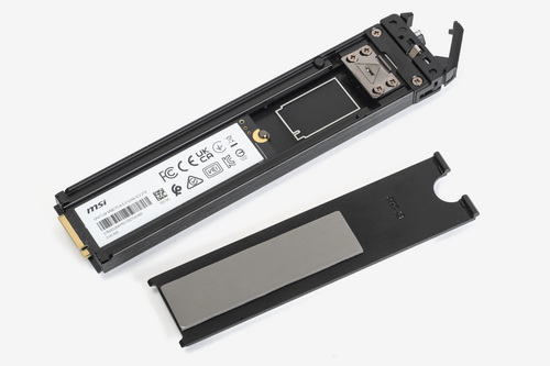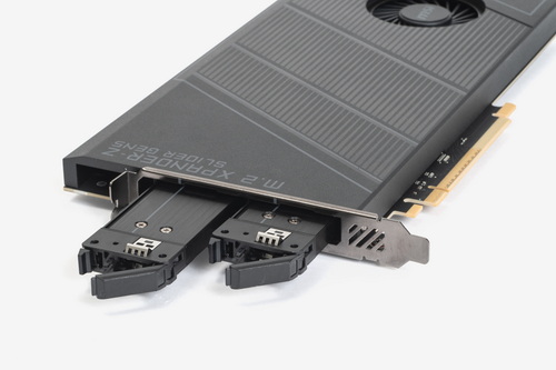 M.2 XPANDER-Z SLIDER GEN5が優れているのは、拡張ブラケット側、つまりPCケースの裏側からM.2スロットを抜き挿しできること。マザーボード上のM.2スロットはPCケースに組み込んでしまうとビデオカードを抜かないとスロットにアクセスできない、よくあるM.2 SSD増設用拡張カード型はヒートシンクを分解しないとSSDの着脱ができない、といった使いにくさもあり、SSD増設するのは「できることは分かっているけどめんどう」と感じたことがある人も多いはず。そんな手間を解消してくれるM.2 XPANDER-Z SLIDER GEN5の構造と使い勝手はなかなかおもしろい。
