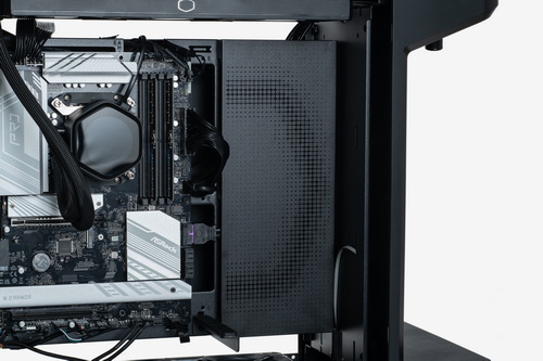 個性的な外観と構造に目が行くが、PCケースとしての完成度は、老舗PCパーツメーカーのCooler Masterということでもちろんハイレベル。同社は現在、構造やレイアウトの柔軟性、自由度が高いモジュラー構造やツールレス作業の実現などを軸とした「FreeForm 2.0」というデザイン思想を掲げているが、本機もこのFreeForm 2.0に基づく設計となっているという。