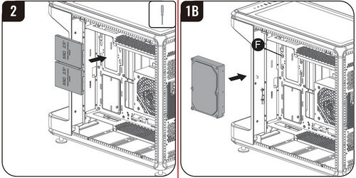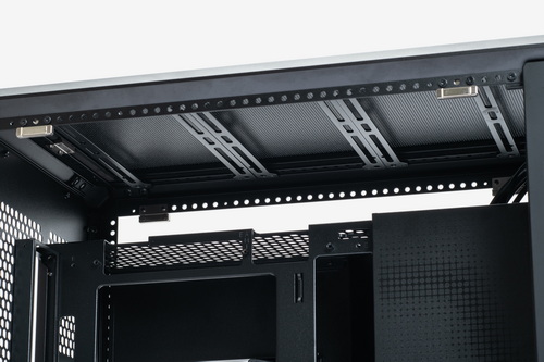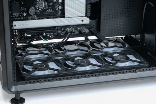 ファンやラジエーターについては、天板と底面のマウンターに取り付ける。マウンターはそれぞれ4本のレール状プレートになっており、これを組み合わせて最大で3基×2列=6基のファンを取り付けられる。マウンターは着脱可能で、マウンターにファンやラジエーターを取り付けてからケースに戻して固定、という作業手順となる(特に底面については、脚がある関係でマウンターを外さないとファンの固定が難しい場所がある)。