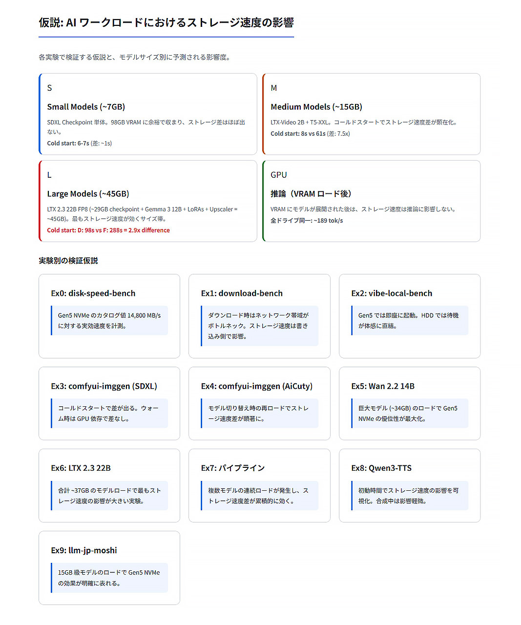 コールドスタートの高速さは、データの読み込みが増えるVRAM容量が少ない環境において価値が出てくる可能性が高い。VRAMが十分でないとAIモデルをその都度ロードして切り替えながら使うことになるので、コールドスタートと同じ状況になりがちだが、ストレージが高速ならその弱点をある程度カバーできるのではないだろうか。