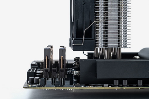 鮮やかに光るLEDをたっぷりと内蔵しながら高さは44mmに抑えられており、CPUクーラーとは比較的干渉しにくい。それでいて、熱伝導率の高い2mm厚のヒートシンクによって冷却力もしっかりと確保。信号や電力を安定させる10層PCB基板を採用、温度センサーも備えており、オーバークロック時の発熱対策としては万全だ。そのデザインと機能は高く評価されており、レッド・ドット・デザイン賞およびiFデザインアワードほか、海外主要メディアで多数の賞を受賞するなど実績も十分だ。