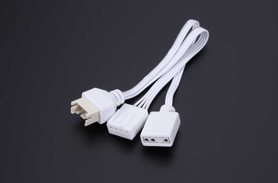 動作させるのに接続が必要なケーブルは、水冷ヘッド動作用の4ピンFANコネクタケーブル、ヘッドの液晶パネル制御用のUSB 2.0 ヘッダーケーブル、冷却ファン用の7ピンのEZ Connケーブルの3本。