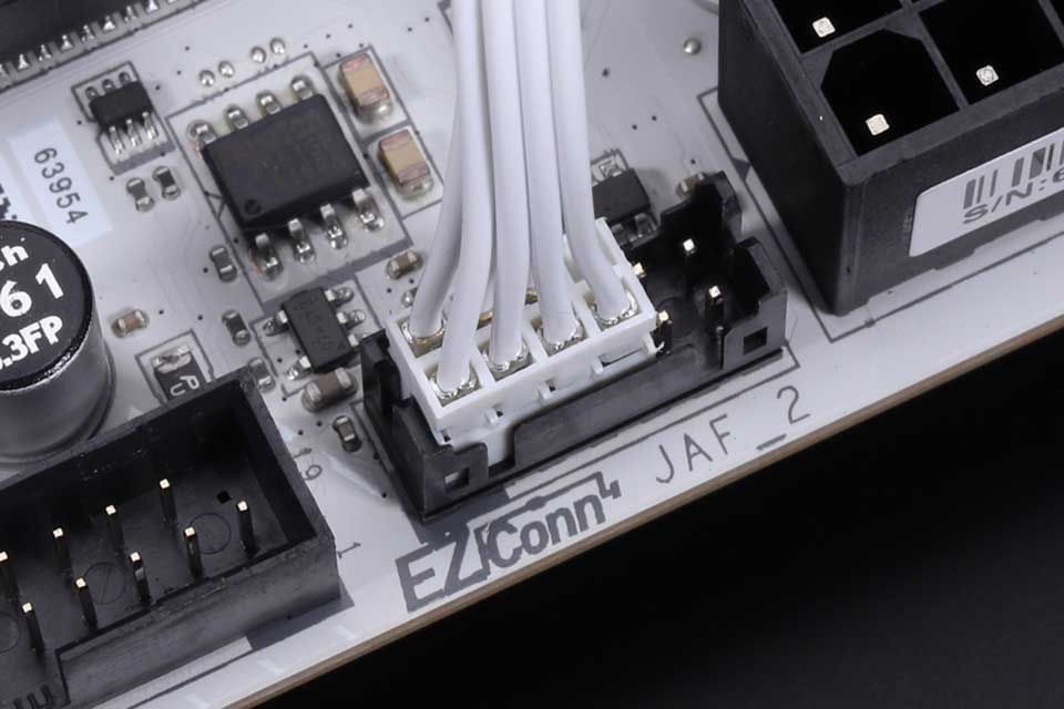 EZ Connは、4ピンFANコネクタと3ピンARGBコネクタを統合したMSI独自規格で、EZ DIYに基づく設計を採用した現行世代のマザーボードに多く採用されているものだ。なお、EZ Connを4ピンFANコネクタと3ピンARGBコネクタに変換するアダプタが同梱されているので、EZ Conn非対応マザーボードにも問題なく搭載できる。
