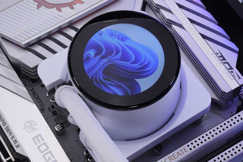 ケーブルがほぼ見えないデザイン性に優れた水冷クーラーヘッドの液晶パネルはサブモニターとしても利用可能