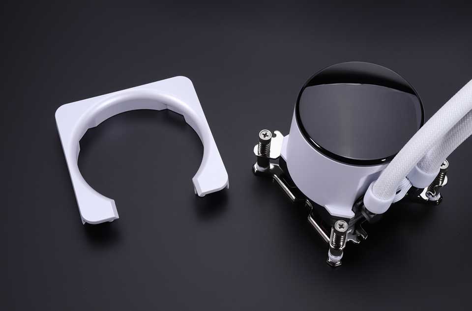 液晶パネルを搭載する水冷ヘッドのビジュアルをよりスマートに見せることを目的とした「EZ CAP」と呼ばれるマグネット固定式のネジカバーが同梱されている。
