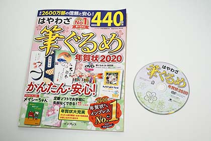 こうしたハードウェアのほか、インプレスの年賀状作成ソフト+素材集、「はやわざ筆ぐるめ年賀状2020」も付属する。これは「筆ぐるめ26 特別版」と、人気作家による多数のイラストデータを収めたDVD-ROMを同梱した書籍(ムック)だ。