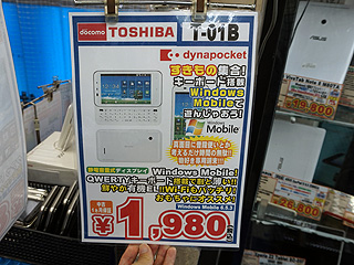Windows Phone 7の前身にあたる「Windows Mobile」を搭載したNTTドコモ向け/東芝製スマートフォン「dynapocket T-01B」の中古品が、イオシス アキバ路地裏店で販売中。店頭価格は税込1,980円で、保証期間は1ヶ月。在庫は少量。