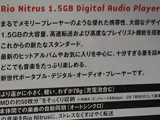 1.5GB HDD搭載の小型音楽プレイヤー「Rio Nitrus」がデビュー(2003/10/4)
